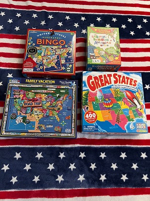 When my grandchildren come to visit, we enjoy doing puzzles and playing games with a United States theme. Shown is a sample of some of our favorites!